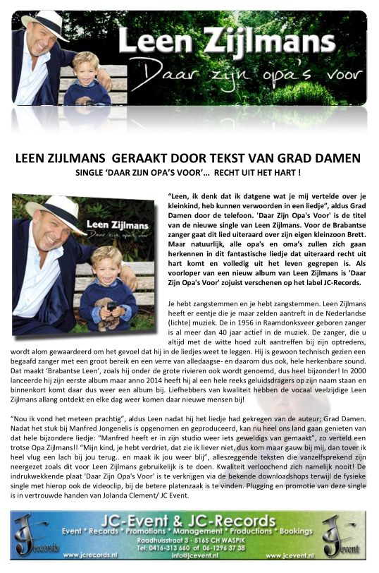 Vanaf heden te downloaden de nieuwe single van Leen Zijlmans ‘’Daar Zijn Opa’s Voor’